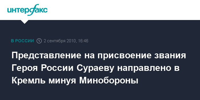 Представление на присвоение звания Героя России Сураеву направлено в Кремль минуя Минобороны