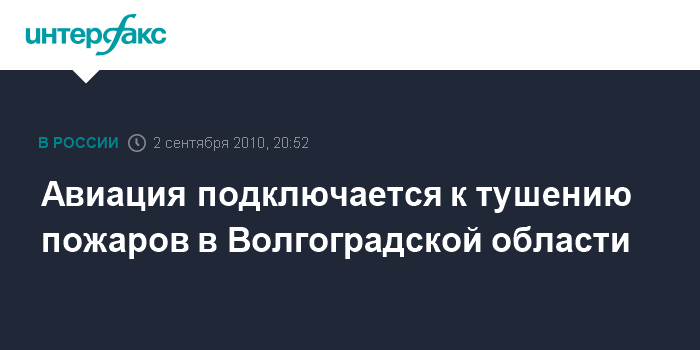 Волгоград. 2 сентября. INTERFAX.RU - В тушении пожаров в Волгоградской области будут задействованы самолеты и вертолеты, сообщили агентству "Интерфакс-Юг" в областной администрации.