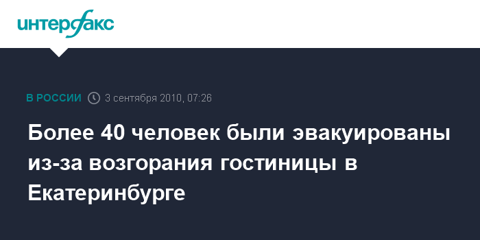 Более 40 человек были эвакуированы из-за возгорания гостиницы в Екатеринбурге