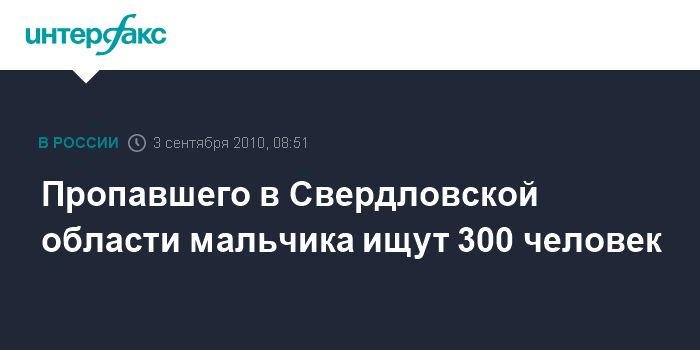 Екатеринбург. 3 сентября. INTERFAX.RU - Прокурор города Режа (Свердловская область) обратился к руководителям предприятий и населению с просьбой оказать помощь в поисках четырехлетнего Жени Баженова, пропавшего 26 августа.