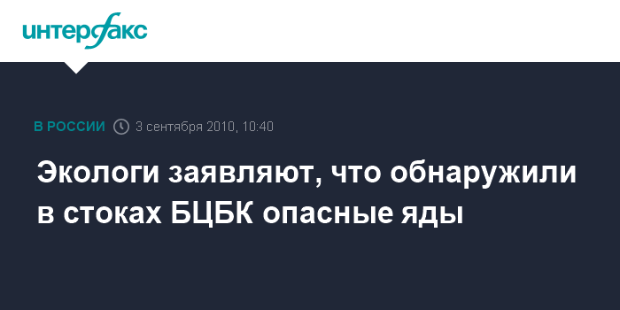Москва. 3 сентября. INTERFAX.RU - Экологи предлагают закрыть Байкальский целлюлозно-бумажный комбинат (БЦБК) или переводить предприятие на замкнутый цикл производства в связи с обнаружением ядов и значительным превышением концентраций загрязняющих веществ в стоках комбината.