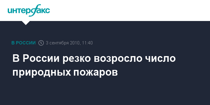 Москва. 3 сентября. INTERFAX.RU - Количество очагов природных пожаров на территории России за последние сутки выросло примерно в 8 раз, говорится в сообщении на сайте МЧС России, размещенном в пятницу.