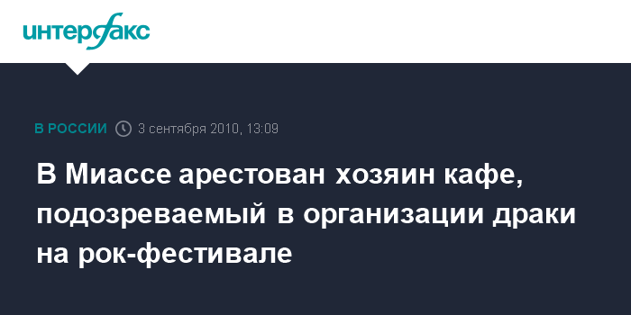 В Миассе арестован хозяин кафе, подозреваемый в организации драки на рок-фестивале