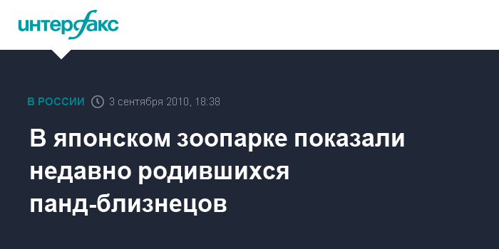 Лондон. 3 сентября. INTERFAX.RU - Панд-близнецов, родившихся в августе в одном из японских зоопарков, впервые показали посетителям, пишет в пятницу британская газета Daily Telegraph.