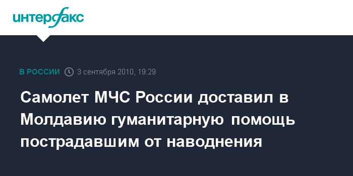 Кишинев. 3 сентября. INTERFAX.RU. - Транспортный самолет ИЛ-76 министерства чрезвычайных ситуаций России доставил в пятницу в Кишинев гуманитарный груз весом 20 т и стоимостью около 29,4 млн. рублей ($1 млн.).