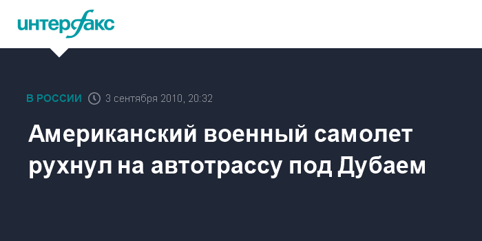 Дубай. 3 сентября. INTERFAX.RU - Американский грузовой самолет потерпел крушение и упал на автомагистраль "Эмираты" в Дубае, сообщает в пятницу межарабский телеканал Al Arabiya.