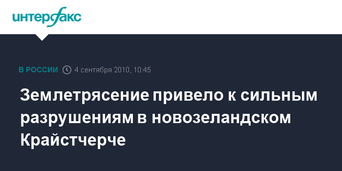 Лондон. 4 сентября. INTERFAX.RU - Чрезвычайное положение было объявлено в одном из крупнейших городов Новой Зеландии Крайстчерче после землетрясения магнитудой 7,0, произошедшем в ночь на субботу, сообщает британская телерадиокорпорация Би-би-си со ссылкой на мэра города Боба Паркера. В результате землетрясения, толчки которого ощущались в городе в течение 40 секунд, в Крайстчерче осколками стекла и обломками были ранены два человека. Местная полиция сообщает, что серьезные повреждения получили дома и дороги, в городе была прервана подача электроэнергии.