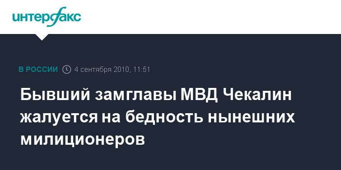 Бывший замглавы МВД Чекалин жалуется на бедность нынешних милиционеров