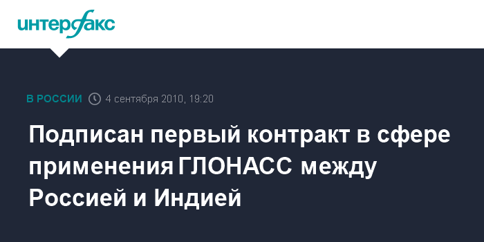 Подписан первый контракт в сфере применения ГЛОНАСС между Россией и Индией