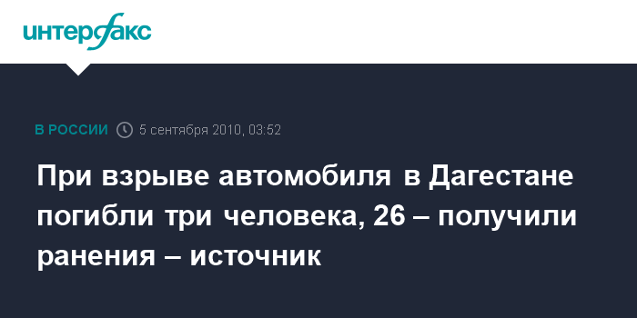 При взрыве автомобиля в Дагестане погибли три человека, 26 – получили ранения – источник