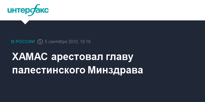 Лондон. 5 сентября. INTERFAX.RU - Группировка ХАМАС, контролирующая сектор Газа, арестовала главу Минздрава Палестины, сообщает в воскресенье британская телерадиокорпорация Би-Би-Си. Родные доктора Муавии Хасанена сообщили, что вооруженные полицейские увели его в пятницу вечером и конфисковали все компьютеры в доме его семьи. Би-Би-Си отмечает, что МХасанен - член соперничающего с ХАМАС палестинского движения ФАТХ, однако он продолжал возглавлять палестинский Минздрав в секторе Газа и после того, как в 2007 году ХАМАС установил контроль над этой территорией.