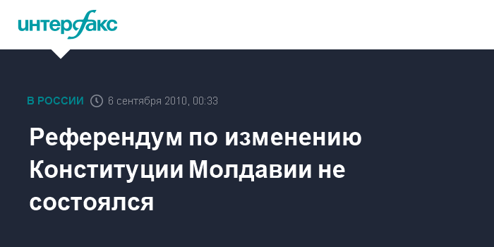 Кишинев. 6 сентября. ИНТЕРФАКС - Референдум по изменению Конституции Молдавии не состоялся из-за низкой активности избирателей, свидетельствуют последние данные, размещенные на сайте Центральной избирательной комиссии республики.