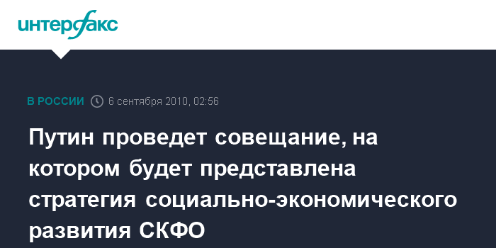 Путин проведет совещание, на котором будет представлена стратегия социально-экономического развития СКФО