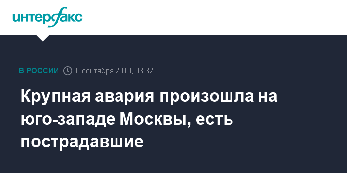 Москва. 6 сентября. ИНТЕРФАКС - Авария с участием 11 автомобилей произошла на юго-западе столицы, сообщил "Интерфаксу" источник в правоохранительных органах в понедельник.