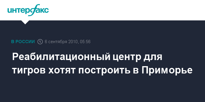 Владивосток. 6 сентября. ИНТЕРФАКС-ДАЛЬНИЙ ВОСТОК - В середине ноября 2010 года в Приморском крае планируется начать строительство первого в России полноценного реабилитационного центра для редких видов хищников, в том числе тигров, сообщает пресс-служба общественного экологического Фонда "Феникс".