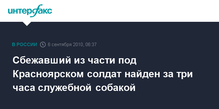 Как сообщает пресс-служба ГУВД Красноярского края, разыскать солдата удалось в течение трех часов при помощи служебных собак.