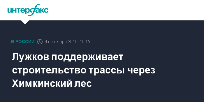 Москва. 6 сентября. INTERFAX.RU - Мэр Москвы Юрий Лужков заявляет, что при строительстве трассы Москва-Санкт-Петербург нужно придерживаться запланированного и уже утвержденного варианта ее маршрута через Химкинский лес.