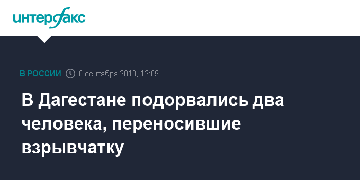 В Дагестане подорвались два человека, переносившие взрывчатку