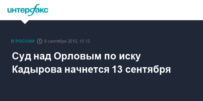 Суд над Орловым по иску Кадырова начнется 13 сентября