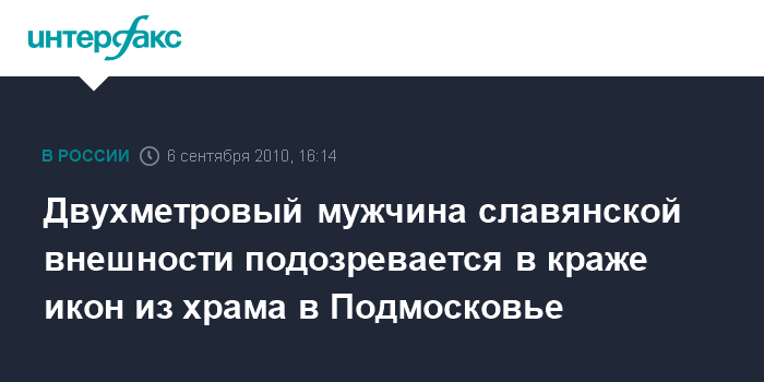 Двухметровый мужчина славянской внешности подозревается в краже икон из храма в Подмосковье