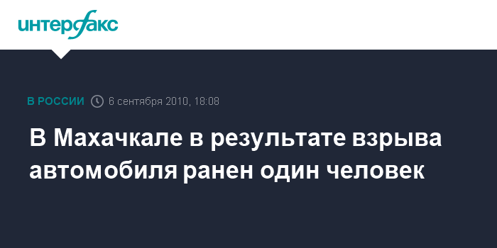 Махачкала. 6 сентября. INTWRFAX.RU - Автомобиль ВАЗ-21010 взорвался в центре Махачкалы. По предварительным данным, ранен один человек, сообщили "Интерфаксу" в пресс-службе МВД республики.