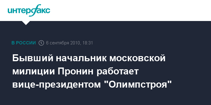 Бывший начальник московской милиции Пронин работает вице-президентом "Олимпстроя"
