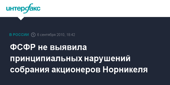 ФСФР не выявила принципиальных нарушений собрания акционеров Норникеля