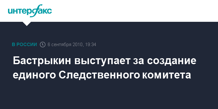 Москва. 6 сентября. INTERFAX.RU - В России должен быть создан единый следственный комитет, заявил глава Следственного комитета при прокуратуре РФ (СКП) Александр Бастрыкин.