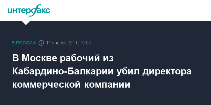 Москва. 11 января. INTERFAX.RU - На северо-востоке столицы приезжий из Кабардино-Балкарии убил женщину - директора коммерческой компании, сообщил "Интерфаксу" в понедельник утром источник в правоохранительных органах города.