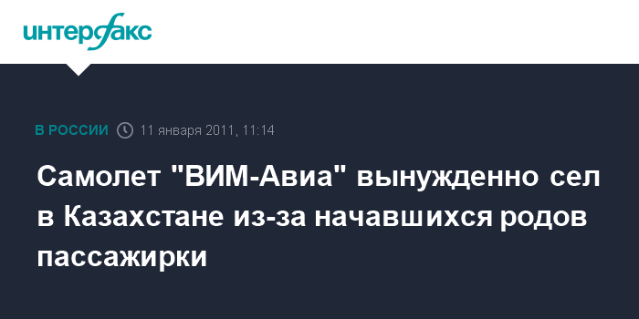 Актюбинск. 11 января. INTERFAX.RU - В казахстанском Актюбинске совершил экстренную посадку "Боинг-737" российской авиакомпании "ВИМ-Авиа", на борту которого у одной из пассажирок начались преждевременные роды.