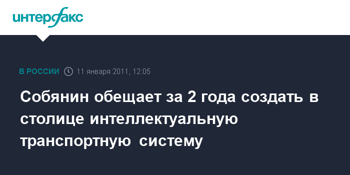 Собянин обещает за 2 года создать в столице интеллектуальную транспортную систему