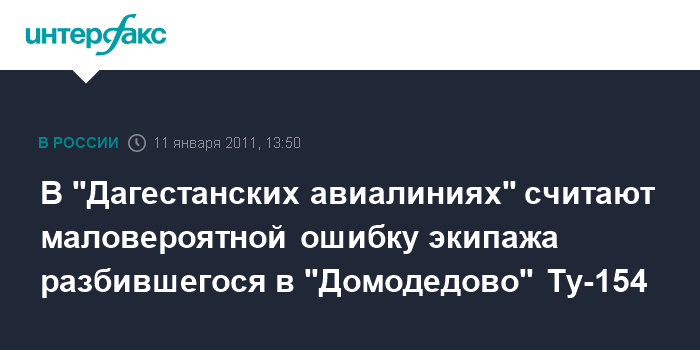 В "Дагестанских авиалиниях" считают маловероятной ошибку экипажа разбившегося в "Домодедово" Ту-154