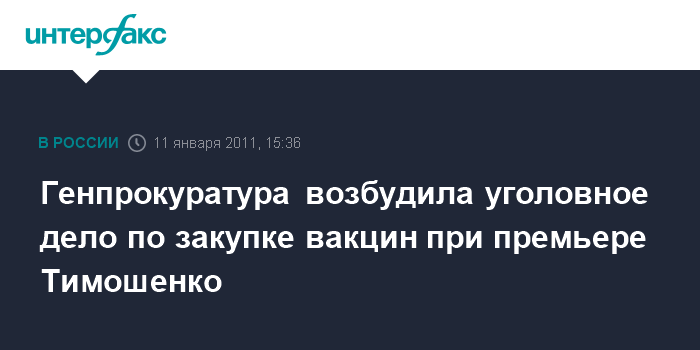 Генпрокуратура возбудила уголовное дело по закупке вакцин при премьере Тимошенко