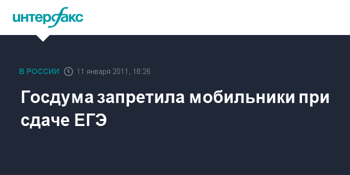 Москва. 11 января. INTERFAX.RU - Госдума во вторник проголосовала за введение запрета на использование мобильных телефонов во время ЕГЭ.