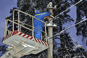 Тем временем синоптики предупреждают о новой угрозе для ЛЭП в ряде российских регионов и, в частности, в Центральном федеральном округе. "В связи со слабыми гололедными явлениями и налипанием мокрого снега на проводах и деревьях не исключены обрывы проводов", - сообщили в пресс-службе Росгидромета во вторник. По прогнозу ведомства, с перемещением очередного циклона из Скандинавии 13-14 января в Ленинградской, Псковской и Новгородской областях ожидаются осадки в виде снега и мокрого снега, который может налипать на провода, при порывистом ветре возможна метель. В Центральном федеральном округе также ожидается налипание мокрого снега, местами метель, гололед, ветер с порывами 15-18 м/секунду. В конце недели, 15-16 января в ЦФО в тылу циклона ожидается понижение температуры ночью до -11..-16, днем до -9..-14, сообщили в Росгидромете.