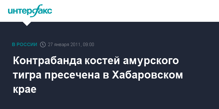 Хабаровск. 27 января. INTERFAX.RU - В Хабаровском крае в ходе спецоперации правоохранительных органов на пропускном пункте "Покровка" Бикинского таможенного поста в пассажирском автобусе, следовавшем в китайский город Жаохэ, обнаружено более 6,5 кг костей амурского тигра.