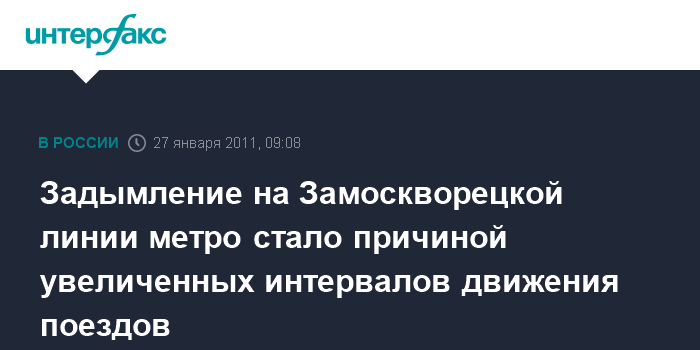 Москва. 27 января. INTERFAX.RU - На Замоскворецкой линии Московского метрополитена в четверг утром на перегоне между станциями "Динамо" и "Белорусская" произошло задымление, сообщил "Интерфаксу" источник в правоохранительных органах.