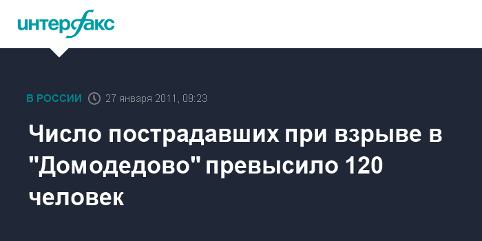 Москва. 27 января. INTERFAX.RU - По данным на 6:00 четверга, в клиники Москвы и Московской области госпитализировано 123 человека, пострадавших в результате теракта в "Домодедово" 24 января.