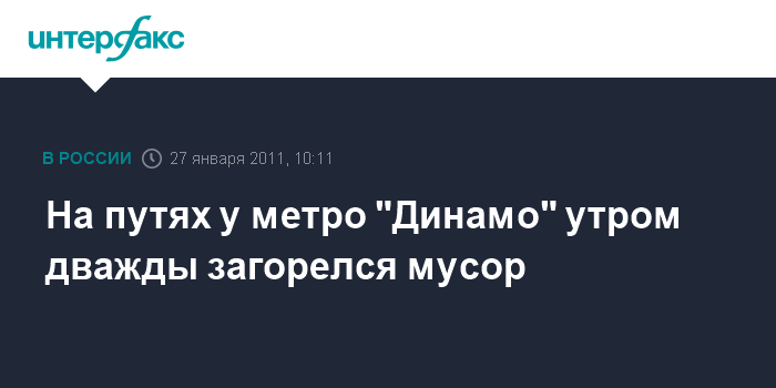 "Примерно в 06:40 на путях в районе станции метро "Динамо" происходило тление скопившегося мусора", - сказал собеседник агентства.