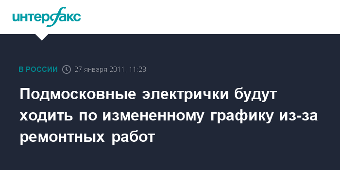 Москва. 27 января. INTERFAX.RU - Движение пригородных электричек на Рижском направлении Московской железной дороги будет изменено в дневные часы в связи с ремонтом контактной сети, сообщили "Интерфаксу" в службе корпоративных коммуникаций столичной магистрали в четверг.