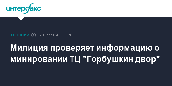 Милиция проверяет информацию о минировании ТЦ "Горбушкин двор"