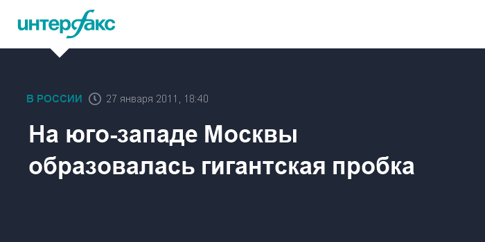 Москва.27 января. INTERFAX.RU - Гигантская пробка образовалась вечером в четверг на пересечении Мичуринского и Ломоносовского проспектов на юго-западе Москвы.