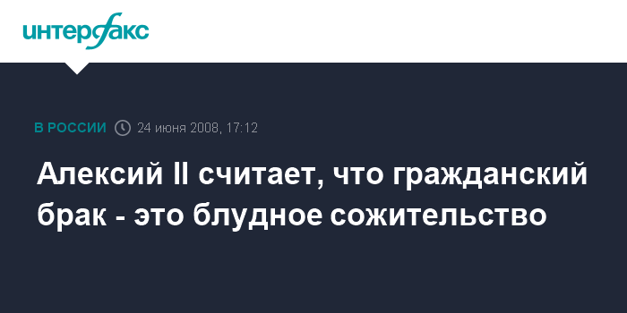 "Необходимо объяснять, почему такой брак (гражданский - "ИФ") не может считаться браком, а расценивается (Церковью - "ИФ") как блудное сожительство", - сказал Алексий II в своем выступлении во вторник на открытии Собора в зале церковных соборов храма Христа Спасителя.