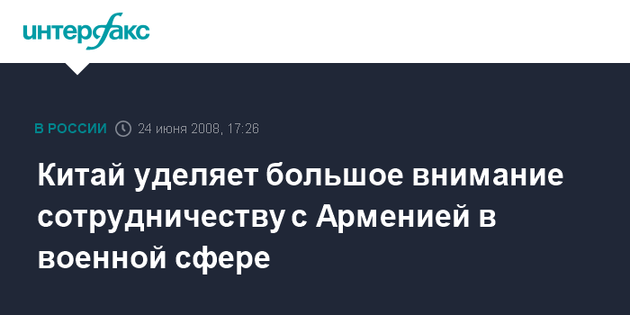 "Было отмечено, что эти отношения строятся на хорошей основе и углубляются. На сегодняшний день высшие военно-образовательные учреждения Китая окончили 27 армянских офицеров, а на 2007-2008 учебный год военно-образовательным планом Китая для представителей ВС Армении выделено 9 мест", - отметил пресс-секретарь министра обороны Армении.