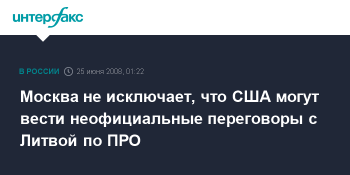 Москва. 25 июня. ИНТЕРФАКС - В России не исключают, что США ведут неофициальные переговоры с Литвой относительно размещения на ее территории элементов ПРО.