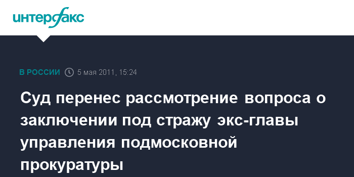 Москва. 5 мая. INTERFAX.RU - Басманный суд отложил на 6 мая рассмотрение ходатайства следствия об аресте бывшего начальника управления Мособлпрокуратуры Дмитрия Урумова.