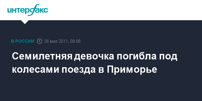 Владивосток. 26 мая. ИНТЕРФАКС-ДАЛЬНИЙ ВОСТОК - Следствие в Приморье выясняет обстоятельства гибели под колесами поезда семилетней девочки.