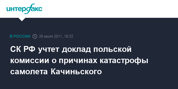 СК РФ учтет доклад польской комиссии о причинах катастрофы самолета Качиньского