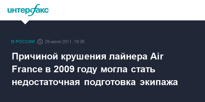 Париж. 29 июля. INTERFAX.RU - Пилоты аэробуса А-330 авиакомпании Air France, потерпевшего крушение над Атлантическим океаном в 2009 году, не были достаточно подготовлены, говорится в докладе французского управления по расследованию происшествий в гражданской авиации (BEA).