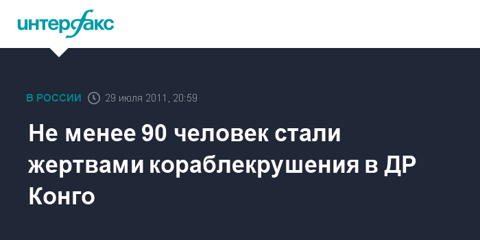 Не менее 90 человек стали жертвами кораблекрушения в ДР Конго